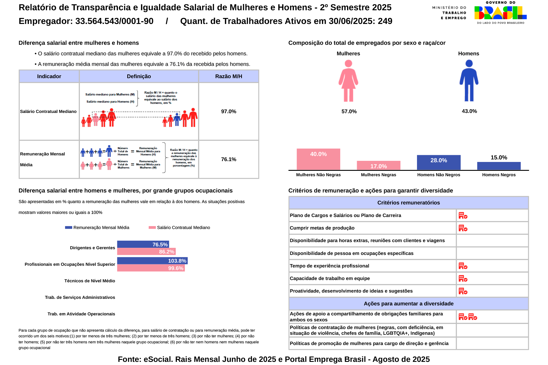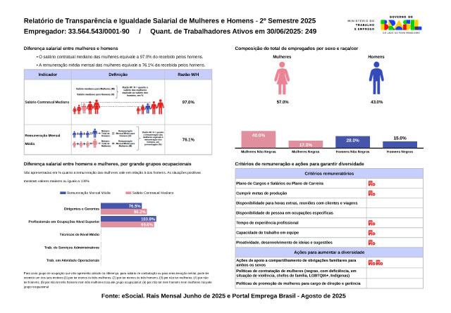 2. As diferenças apontadas no relatório não configuram discriminação de gênero, pois desconsideram critérios previstos em lei ou em Plano de Cargos, como experiência, desempenho, níveis de cargos e formação acadêmica.
