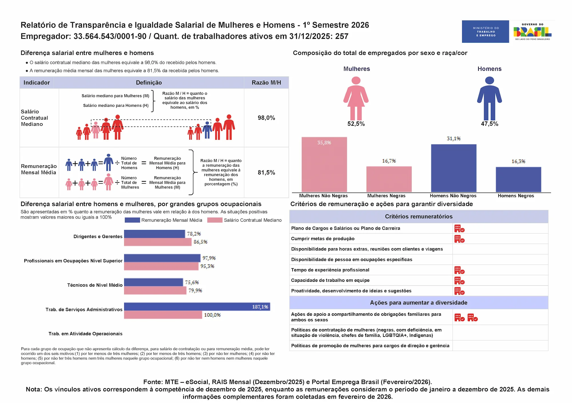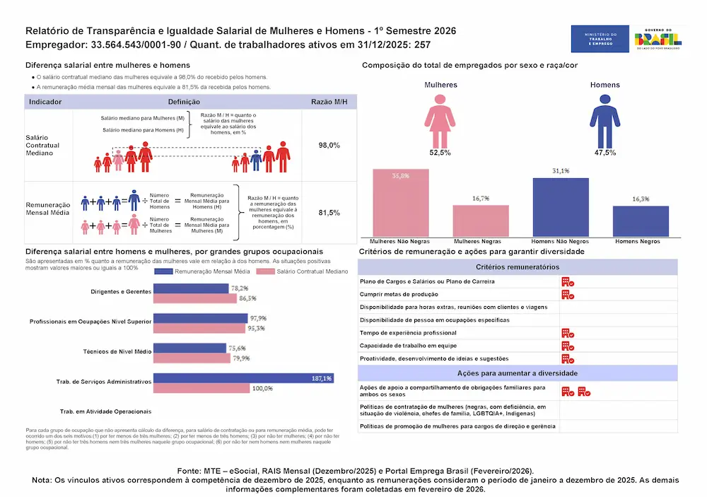 2. As diferenças apontadas no relatório não configuram discriminação de gênero, pois desconsideram critérios previstos em lei ou em Plano de Cargos, como experiência, desempenho, níveis de cargos e formação acadêmica.